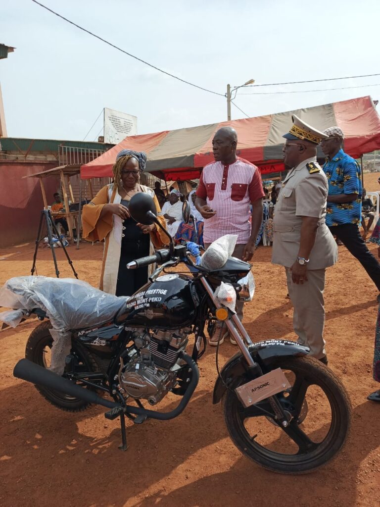 Le parrain de l’événement, N’dédé Ayémou, PDG d’Amanda Prestige, a marqué cette cérémonie par des dons significatifs : une moto pour les déplacements des reporters, deux téléphones fixes pour favoriser la communication avec les auditeurs, ainsi que d’autres équipements logistiques. Il a également prodigué des conseils à la directrice de la radio, Angèle Koulaï, l’invitant à persévérer et à s’inspirer de son propre parcours entrepreneurial.