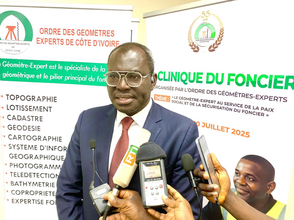 À l’occasion de ses 55 ans d’existence, l’Ordre des Géomètres Experts de Côte d’Ivoire (OGECI) innove avec une initiative inédite baptisée « La Clinique du Foncier », autour du thème : « Géomètre-Expert au service de la paix sociale et de la sécurisation du foncier ». L’étape de Man s’est tenue le jeudi 10 juillet 2025 dans la salle de conférence de la CGRAE, dans le cadre d’une campagne nationale lancée du 9 au 11 juillet. Objectif : répondre gratuitement et en toute transparence aux préoccupations foncières des citoyens, entreprises et institutions.