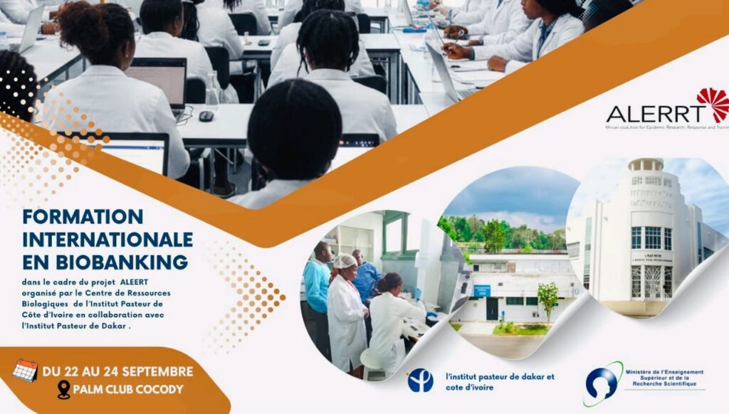 la Dans le cadre du projet ALERRT (African coaLition for Epidemic Research, Response and Training), l’Institut Pasteur de Côte d’Ivoire organise, du 22 au 24 septembre prochain, un atelier de formation consacré au biobanking. Pendant trois jours, 22 *professionnels* issus de laboratoires africains se retrouveront au Palm Club d’Abidjan afin de renforcer leurs compétences dans la gestion et la conservation des échantillons biologiques, un maillon essentiel dans la lutte contre les épidémies.