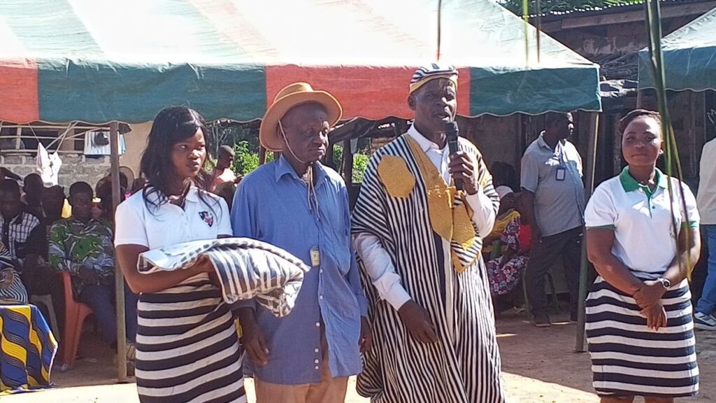 Prenant la parole au nom de toute la population, le chef du village a exprimé sa profonde reconnaissance au président Bleu Charlemagne et à son équipe pour les nombreuses actions entreprises dans la région, notamment les projets visant à améliorer les conditions de vie des habitants. En signe d’estime, il lui a remis un boubou traditionnel et plusieurs présents, avant de lui adresser des bénédictions lors d’une libation solennelle.
