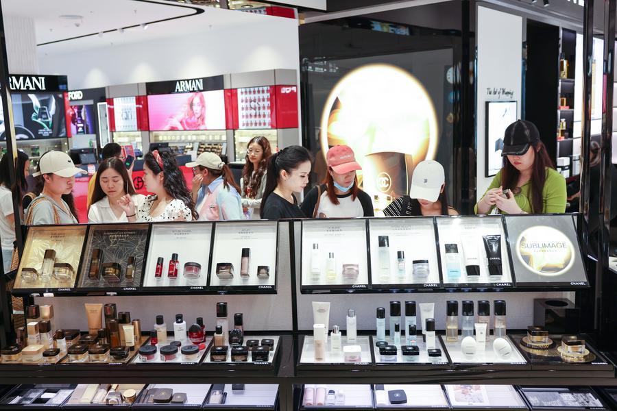 BEIJING, 7 avril (Xinhua) — Au Haikou International Duty-Free Shopping Complex, le plus grand centre commercial hors taxe au monde situé à Haikou, capitale de la province insulaire de Hainan (sud de la Chine), l’espace dédié aux cosmétiques et aux produits de luxe attire un flux continu de visiteurs.